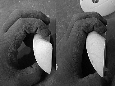 ボリュームがあり、球体とも違い、指先までラウンド形状なので、ガバなのにちょっと気が抜けません