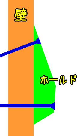ホールドをつかんだとき・不意に落ちてしまった場合にも指には触れない位置」に